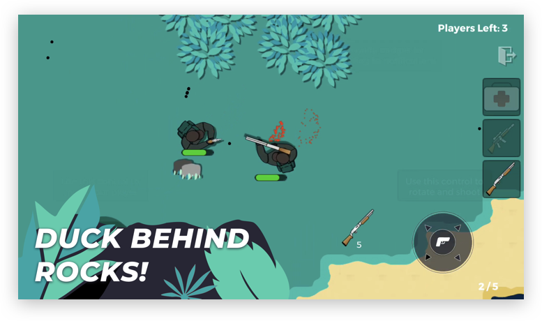 We wanted to see if we could build a high quality mobile game in just a few weeks, focusing on avoiding the unnecessary complexity of other mobile battle royale attempts, decluttering the UI, and avoiding the winner just being whoever had the best wifi at the time.
