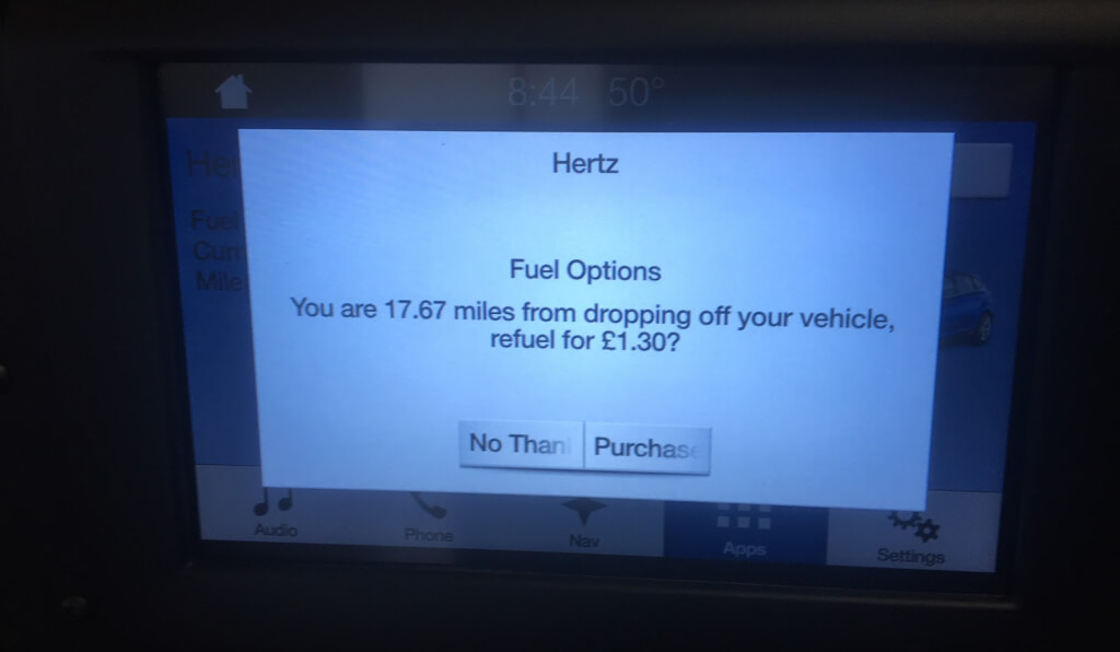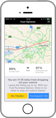 Another common peeve is having to fill up the car with petrol just before returning it. So, on the last day of the rental, the app asks if the customer would like to buy fuel from Hertz at a discount – saving them the hassle of having to find a petrol station on their way back. If they prefer to fill up on the way, the app guides them to the petrol station nearest to the Hertz office.